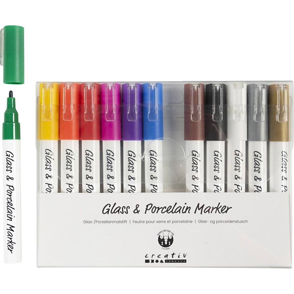 Glas- en Porseleinstiften 1-2 mm semi-dekkend diverse kleuren 12stuks