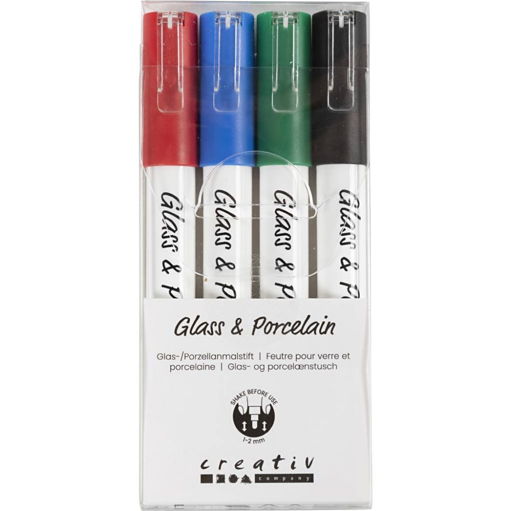 Glas- en Porseleinstiften 1-2 mm semi-dekkend zwart blauw groen rood 4stuks