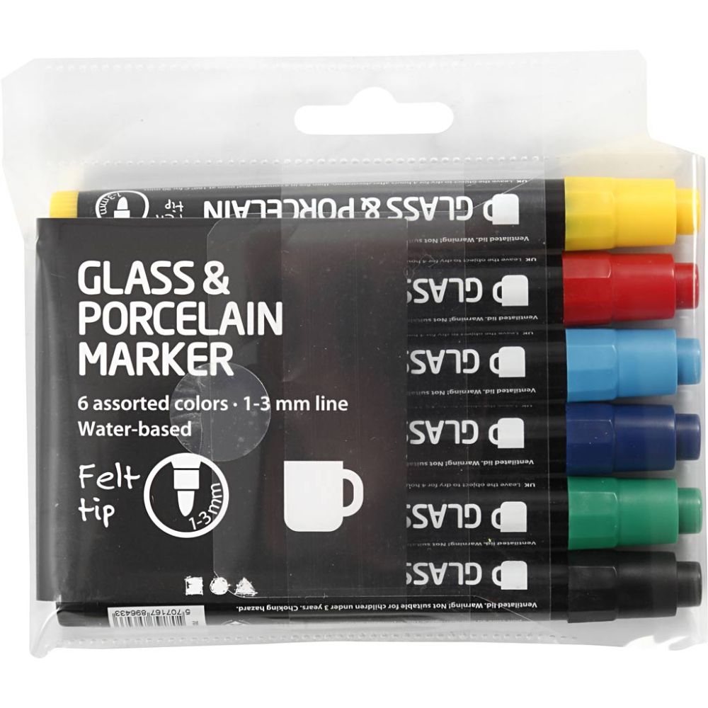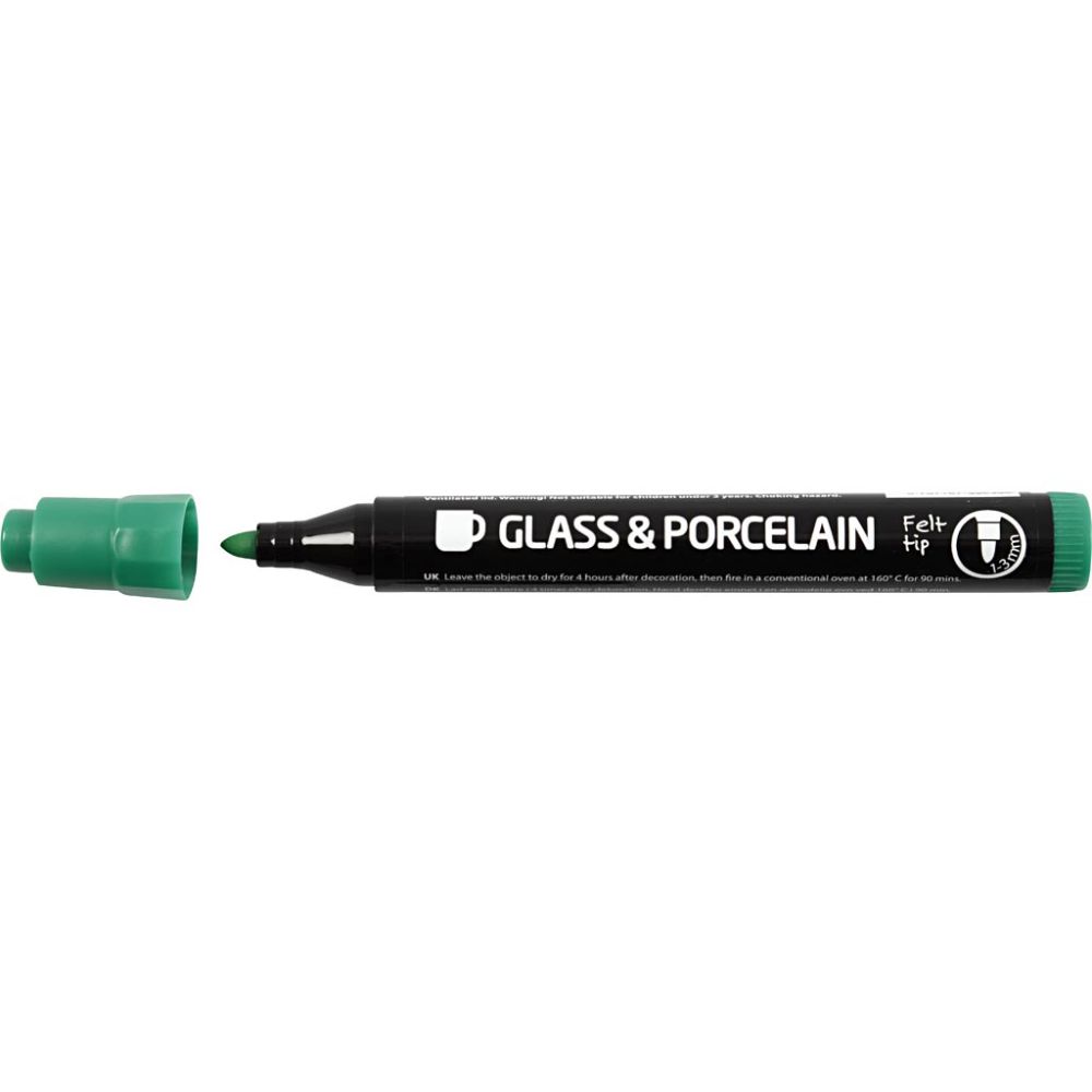 Semi-ondoorzichtige stift op waterbasis met vaste viltpunt voor glas en porselein. Na het uitharden in de oven is het product vaatwasserbestendig in milde cycli. . Als u glas- en porseleinstiften nodig hebt kunnen we deze beslist aanbevelen – ze zijn goed voor veel verschillende creatieve projecten – en kunnen gemakkelijk door kinderen worden gebruikt. Als u uw eigen stuk glas of porselein wilt versieren moet het oppervlak schoon en vetvrij zijn – en het afgewerkte stuk moet vier uur drogen. Zet het daarna in een koude oven stel de temperatuur in op 160 graden en laat het 90 minuten uitharden..