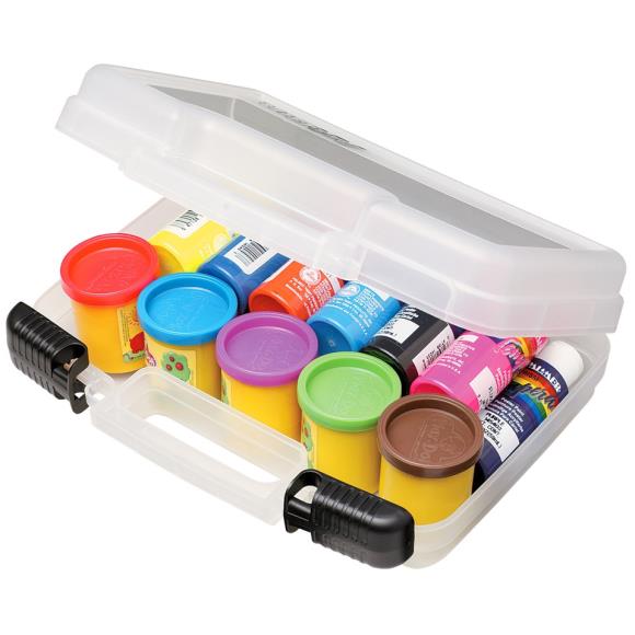 This Quick View Carrying Case is molded of translucent polypropylene for easy viewing of supplies. Secure sliding, lockable latches with easy grip, molded-in handles. Stackable. Size: 10-1/2×8-3/8×3-1/8 inches.