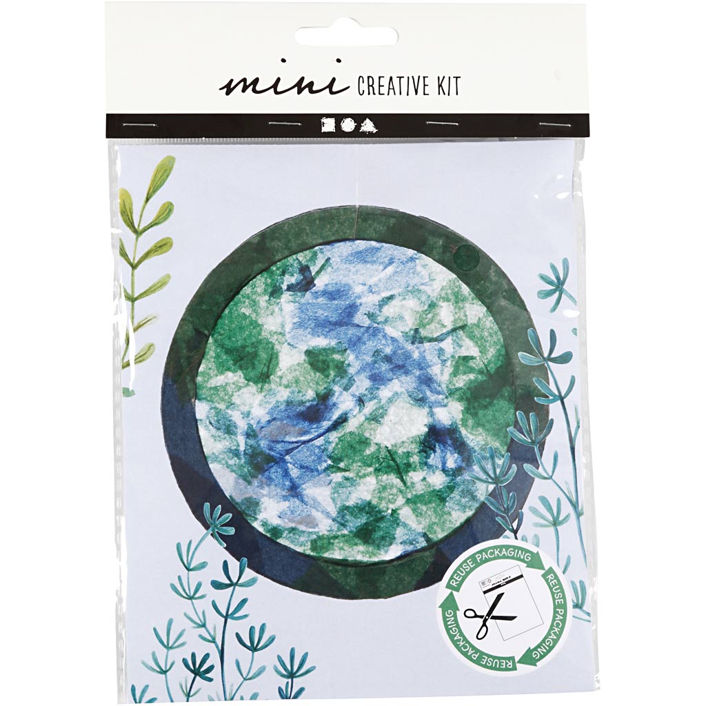 Materialenset om van karton en zijdepapier een zonnevanger / mobiel te maken. De verpakking wordt gebruikt voor de hanger. Instructies inbegrepen. . Knip de kartonnen ringen uit de verpakking. Scheur tissuepapier in kleinere stukjes en plak ze met de meegeleverde lijm op een kant van elke kartonnen ring. Lijm een van de versierde kartonnen ringen op de plastic zak uit de verpakking en knip om de ring heen. Maak nu de planeet door tissuepapier op de plastic zak te lijmen en vervolgens de andere kartonnen ring vast te lijmen. Hang de planeet als decoratie / suncatcher voor het raam en kijk hoe hij het licht weerkaatst..