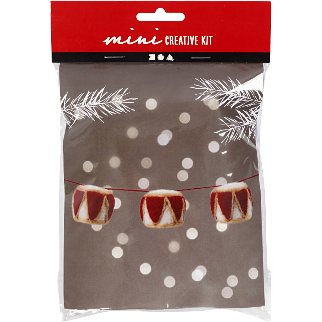 Start de creativiteit van de winter en laat de kerstsfeer los met deze naaldviltset, die alle materialen bevat die nodig zijn om een slinger te maken met drie vilten trommels in traditionele kerstkleuren. De meegeleverde instructies helpen u op weg.