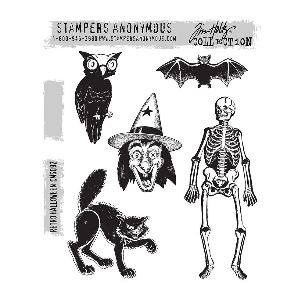 CMS092 Tim Holtz Cling Rubber Stamp Retro Halloween. Stampers Anonymous-Tim Holtz Cling Rubber Stamps. These red rubber stamps come mounted on cling foam so you can use them with any acrylic block (sold separately). Great for using with Tim’s signature distressing techniques! Stamps come on a 3-hole punched sheet for easy storage in the Tim Holtz Stamp Storage Binder (also sold separately). This package contains one 8-1/2×7 inch sheet of stamps. Comes in a variety of designs.