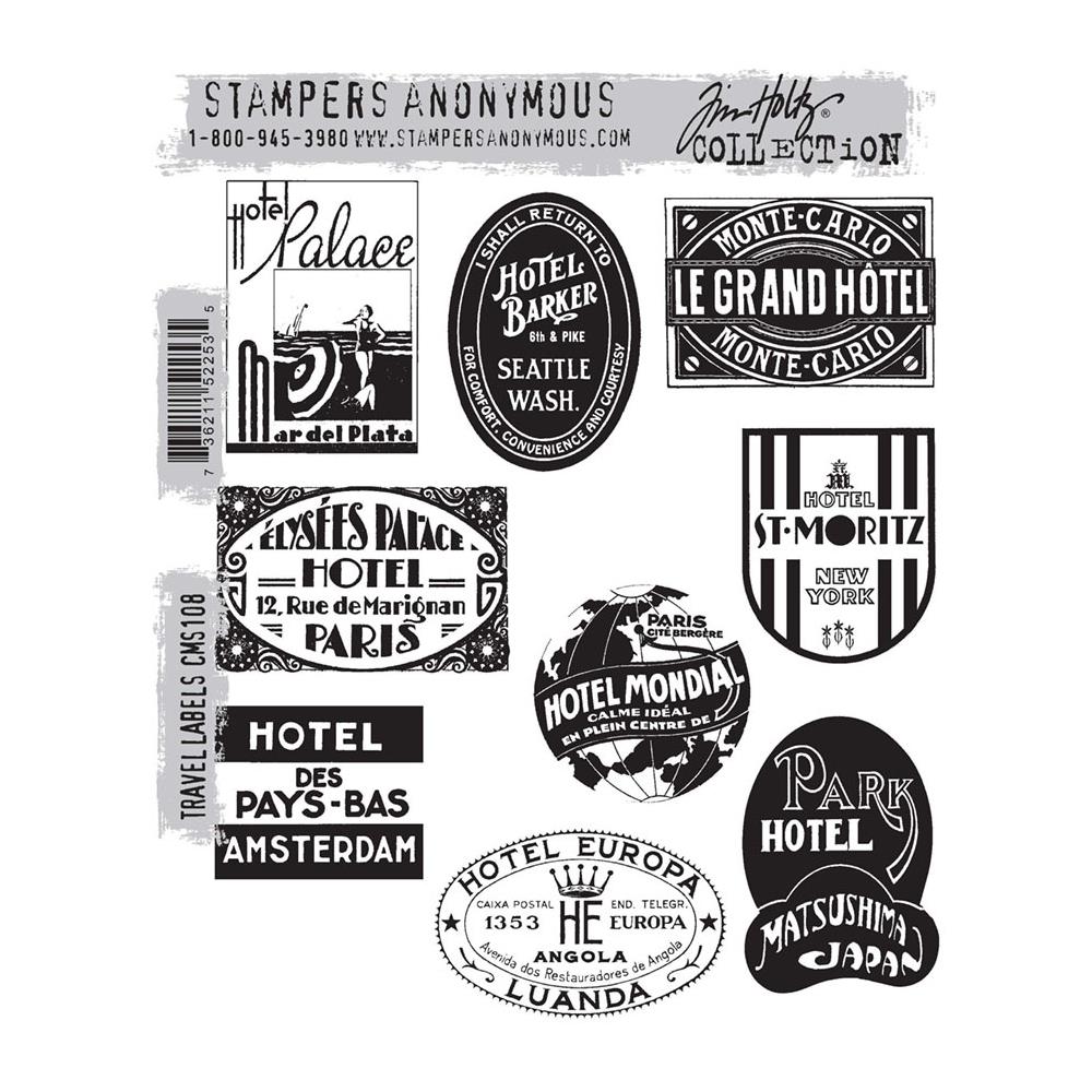 CMS108 Tim Holtz Cling Stamps 7″X8.5″ Travel Labels