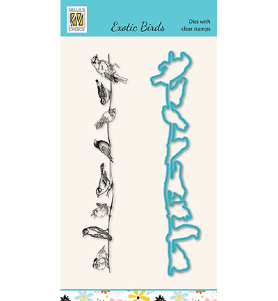 Diecut & Clearstamp set, Exotic birds serie Various birds on wire