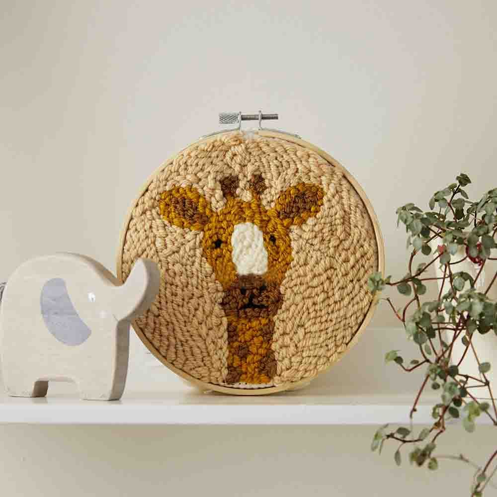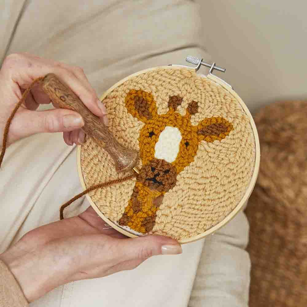 bevat alles wat u nodig hebt om schattige decoratie voor de baby- of kinderkamer te maken met de punch needle techniek. De vrolijke giraf is een zeer geschikt project voor de beginnende puncher.