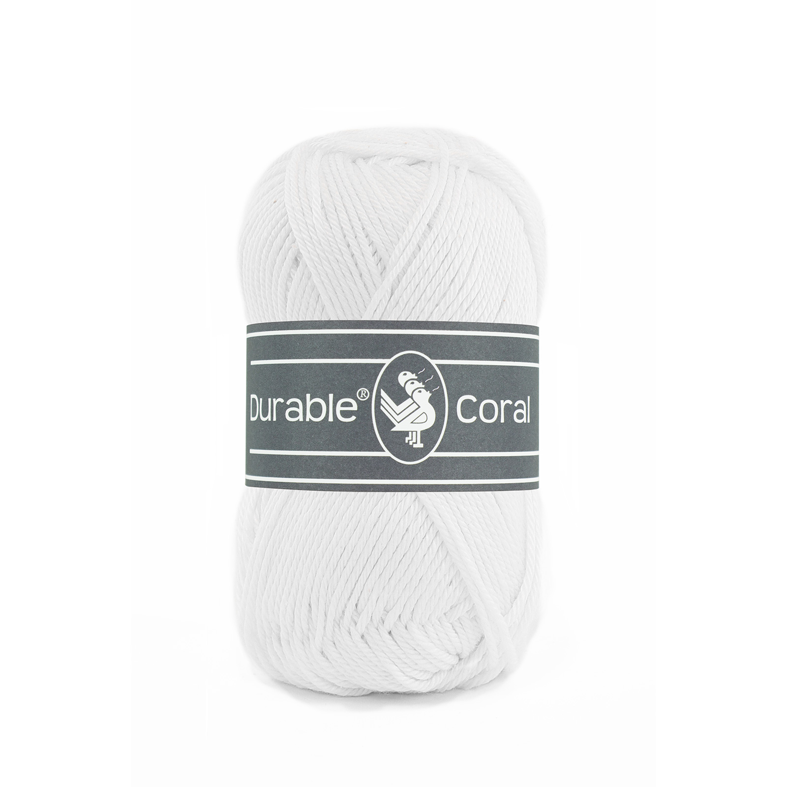 Zoek je haakkatoen in de kleur Wit? Bestel dan deze Durable Coral katoen 50 gram 310 – White. Durable Coral is een gemerceriseerd en gegaseerd breikatoen of haakkatoen. Het bekende Durable haakkatoen is al meer dan 30 jaar verkrijgbaar. Het is een heerlijk haakgaren voor de meest uiteenlopende haakprojecten. Het garen heeft een looplengte van 125 meter op 50 gram en advies voor de naalddikte is 2,5 to 3,5 mm. Durable Coral is geproduceerd volgens de OEKO-TEX® Standard 100. Dat wil zeggen dat dit garen getest is op schadelijke stoffen en dat dit garen daarom in ecologisch opzicht onschadelijk is voor de mens en hierdoor geschikt in gebruik voor vele projecten.