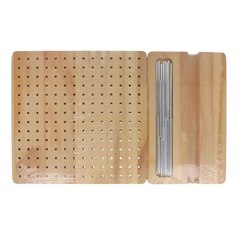 Deze tweezijdige grannyblokspanner van Opry is een essentiële tool voor iedere breier of haker. Het wordt gebruikt om gehaakt of gebreid werk op te spannen, zodat de vorm gelijkmatiger wordt. Het bord heeft 14 rijen met 14 gaatjes waar u metalen pennen in kunt plaatsen, afhankelijk van de vorm en maat van uw haak- of breiwerk. De grannyblokspanner wordt geleverd met een handige standaard, zodat u het bord ook rechtop kunt zetten. Het bord en de standaard zijn gemaakt van glad afgewerkt en duurzaam bamboehout wat er ook nog eens prachtig uitziet. Het bord meet 23 x 23cm en het wordt geleverd met 20 metalen pennen.