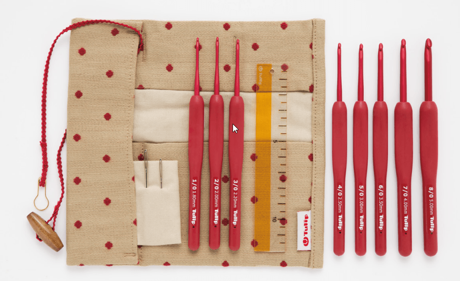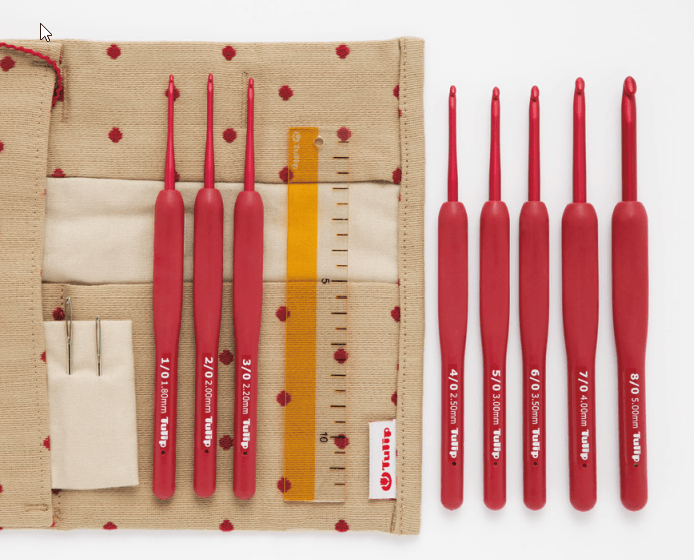Ga dan voor deze Tulip Etimo Red haaknaalden set. Deze set bevat haaknaalden in de maten 1.80, 2.00, 2.20, 2.50, 3.00, 3.50, 4.00 en 5.00mm en wordt met recht de Rolls Royce onder de haaknaalden genoemd. Naast de haaknaalden bevat de set ook een liniaal, twee stopnaalden en een mooie gestipte opbergtas. Bestel hieronder de complete set. Wil je meer informatie scroll dan verder naar beneden.