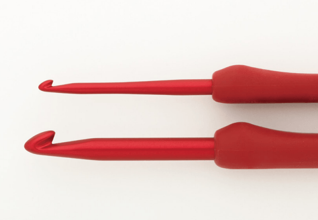 Het Tulip Etimo assortiment biedt u de ideale balans tussen stijl en comfort. Met de zachte ergonomische softgrip handvatten liggen deze haaknaalden comfortabel in de hand en garanderen urenlang haakgenot zonder enige vermoeidheid. Elke haaknaaldpunt is zeer precies en heeft een gladde afwerking, waardoor het garen makkelijk over de naald glijdt! Dit is zeer fijn voor het haken van alle garens maar zeker voor stugge of garens die snel splijten zoals bijvoorbeeld Scheepjes Cahlista. Bij normale haaknaalden wordt de punt van de haaknaald door intensief gebruik stroever, de Tulip Etimo Red haaknaald heeft hier geen last van. De Tulip Etimo Red is een rode haaknaald. Deze mat rode haaknaald reflecteert geen licht en is zacht voor de ogen. Daarnaast valt het door de rode kleur goed op waar de naald moet worden ingestoken.