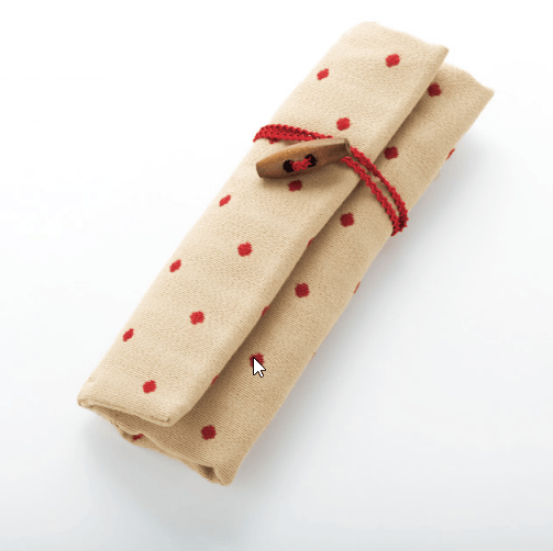 De opbergetui is voorzien van een handig koord waaraan je je schaartje vast maakt, zo heb je die altijd bij de hand. Met een houtje-touwtje koord word de etui opgerold en vast gemaakt.