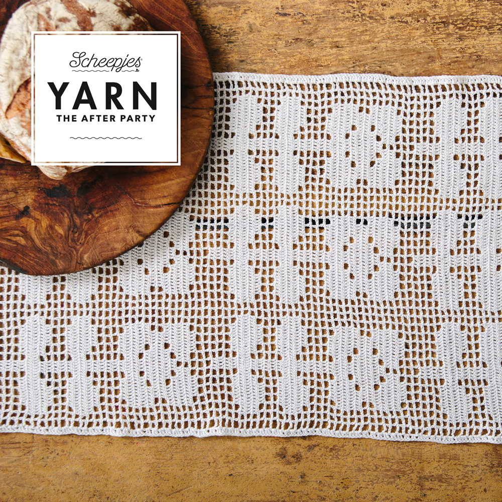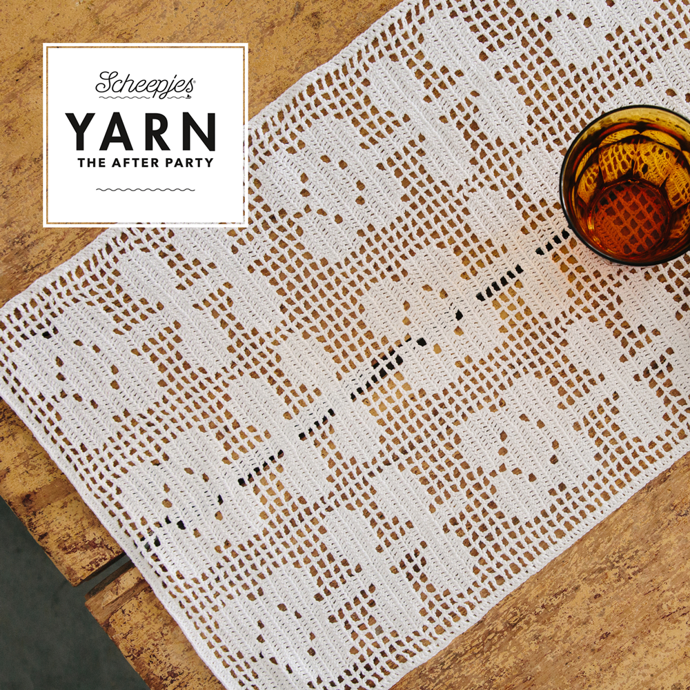 Filethaken is een ogenschijnlijk eenvoudige techniek voor het maken van ontwerpen met een delicate en kantachtige uitstraling. Het patroon voor de Flower Fields Table Runner is te vinden in YARN – The After Party 148 en bevat een geschreven patroon en stekendiagram.